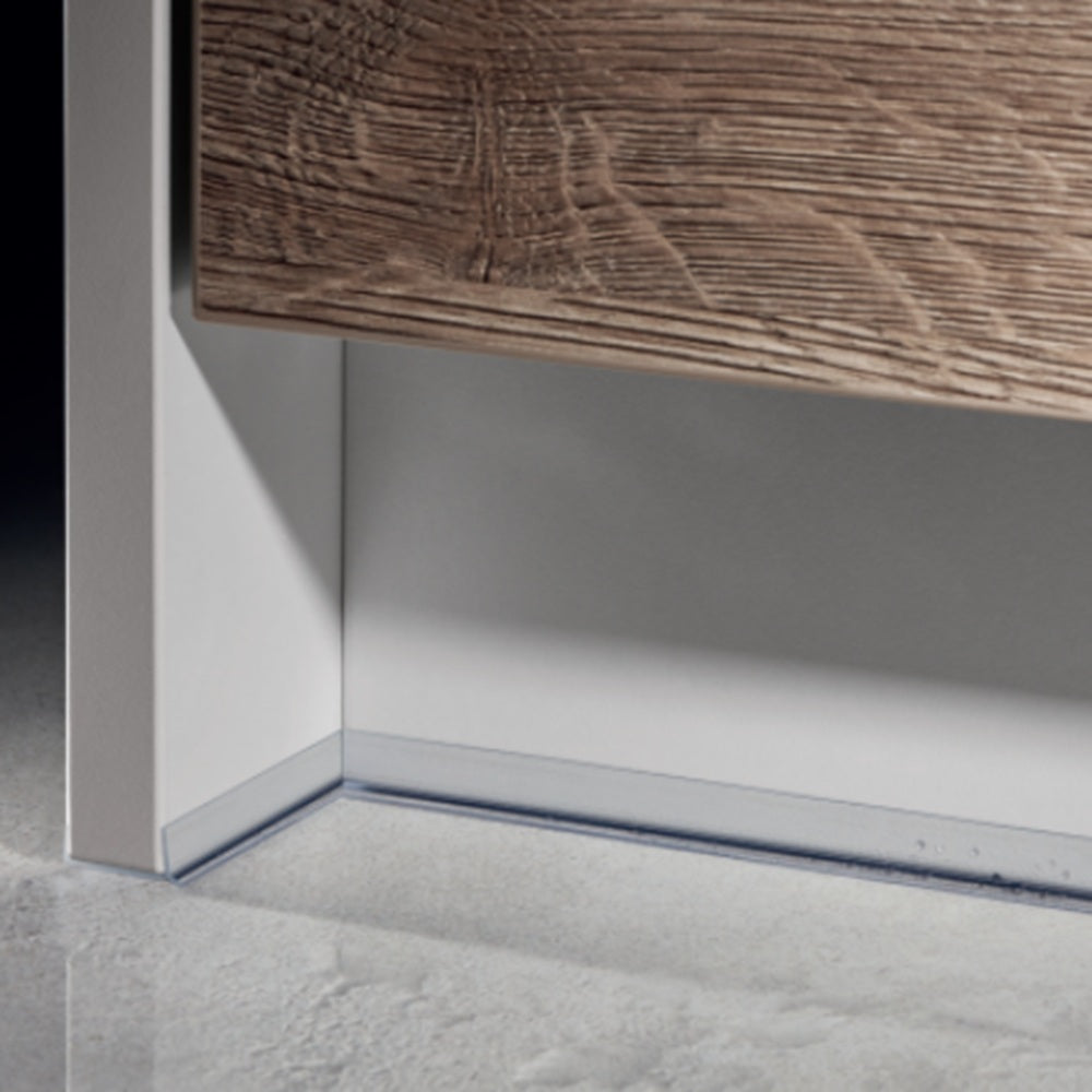 Quick and easy to install – simply cut the strip to size using scissors or a knife, bend the side edges, and insert the furniture board into the strip. Once installed, it effectively seals the bottom of the plinth against moisture, dirt, and water ingress.