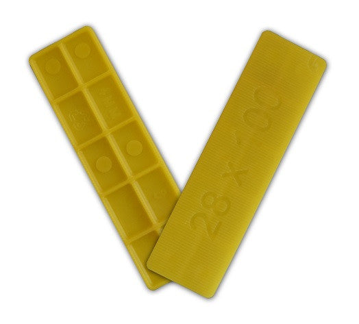 The plastic glazing packers are 100mm long, 28mm wide and are available in various thicknesses. Designed to aid when fitting windows, frames, door and flooring, they allow the material being fitted to be raised for a level finish. Each packer has it's thickness printed on the reverse making it easy to distinguish its size.